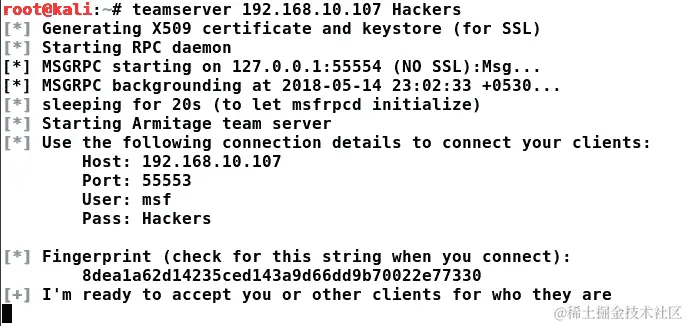 我们在脚本中有yes作为下一个命令。脚本中的yes表示监听器的初始化: