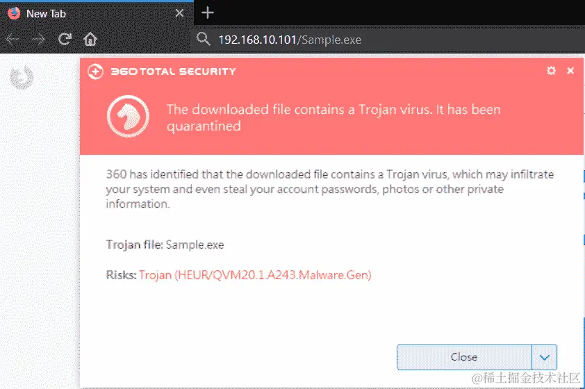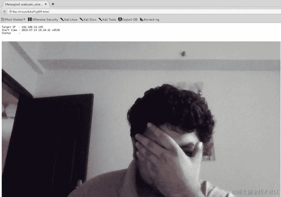 如果一切顺利,我们将能够在目标系统上运行 Meterpreter。整个想法是利用目标网站来诱使尽可能多的受害者,并获取对其系统的访问权限。这种方法在进行白盒测试时非常方便,其中内部 Web 服务器的用户是目标。让我们看看当受害者浏览到恶意网站时会发生什么: