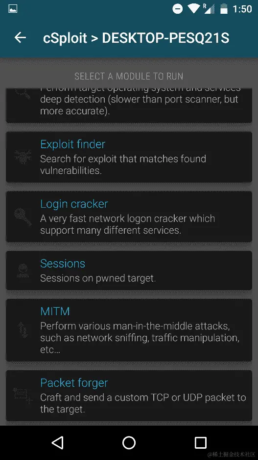 我们假设我们的目标是DESKTOP-PESQ21S,点击它将打开一个包含所有列出选项的子菜单: