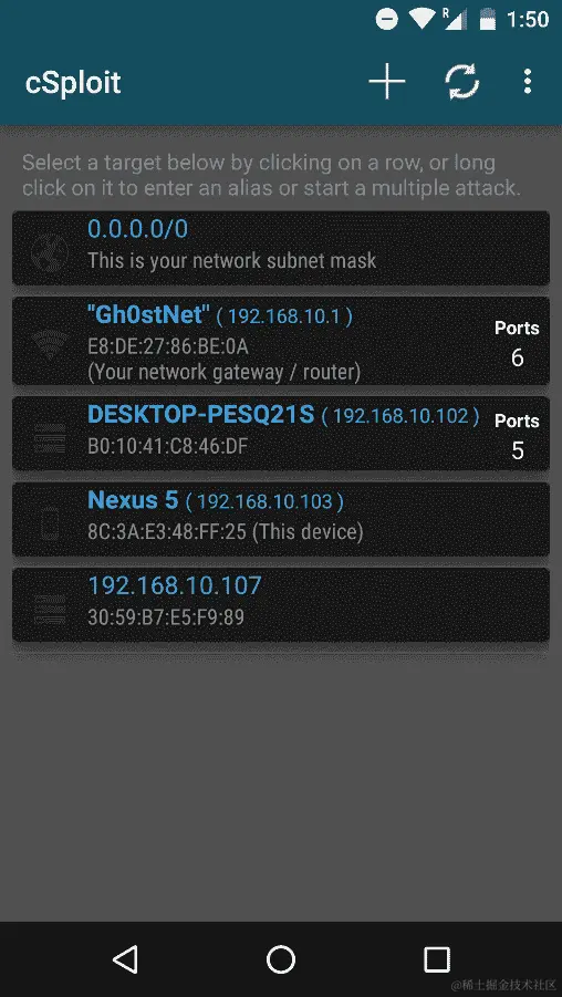 下一步是扫描网络范围,以识别网络上存在的所有主机,包括受害者和路由器,如下面的屏幕截图所示: