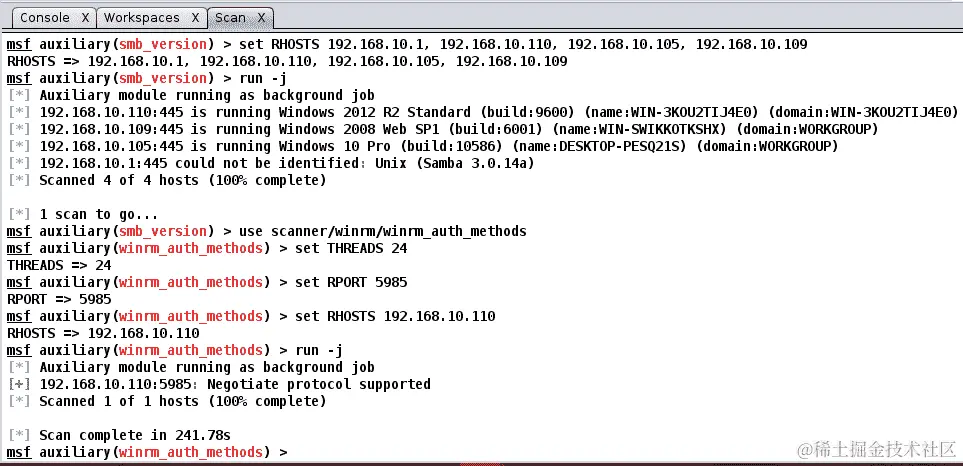 在前几章中,我们看到了如何使用 load 命令快速加载插件到 Metasploit。同样,让我们使用load minion命令加载minion插件,如前面的截图所示。加载成功后,切换到您一直在工作的工作区,或者如果工作区中没有主机,则执行 Nmap 扫描:
