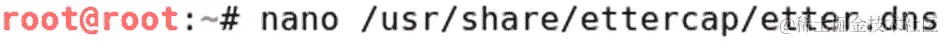 这个条目将在受害者请求google.com时发送攻击者机器的 IP 地址。创建条目后,保存该文件并打开ettercap,使用下面截图中显示的命令: