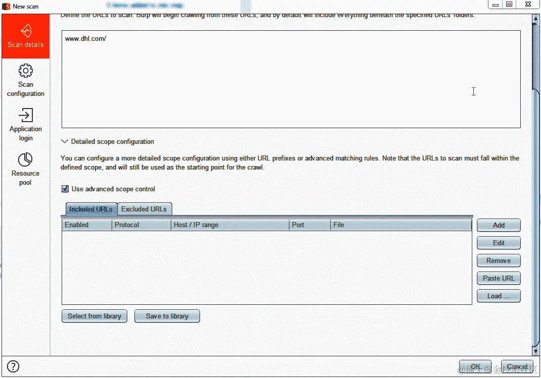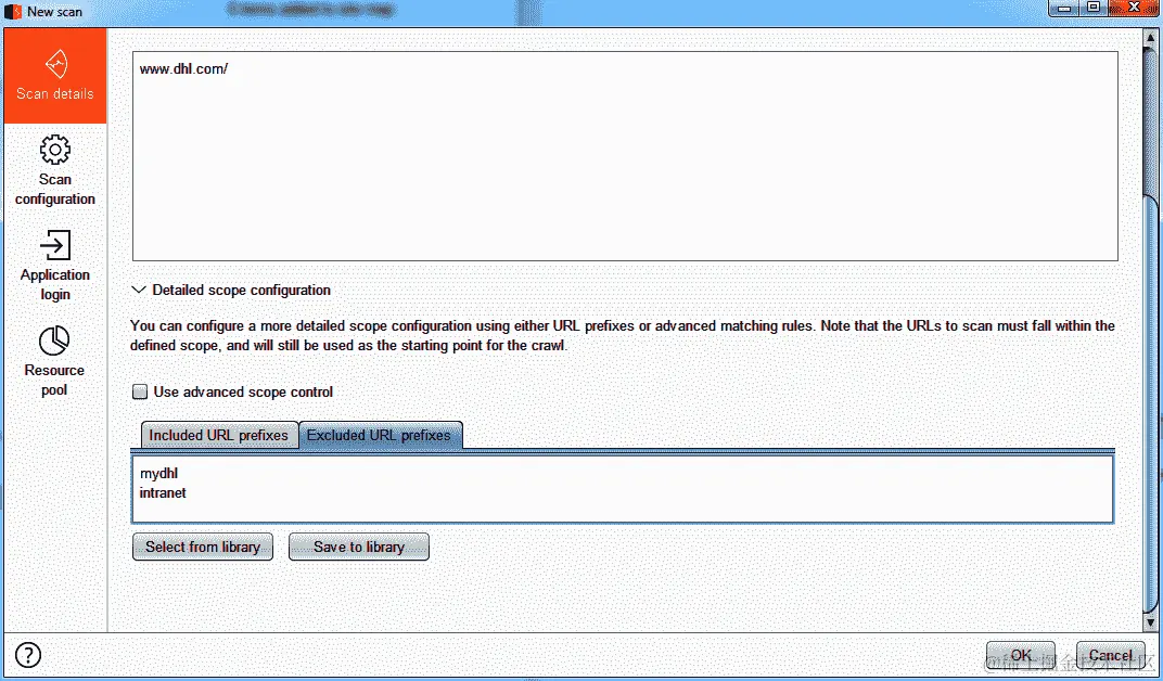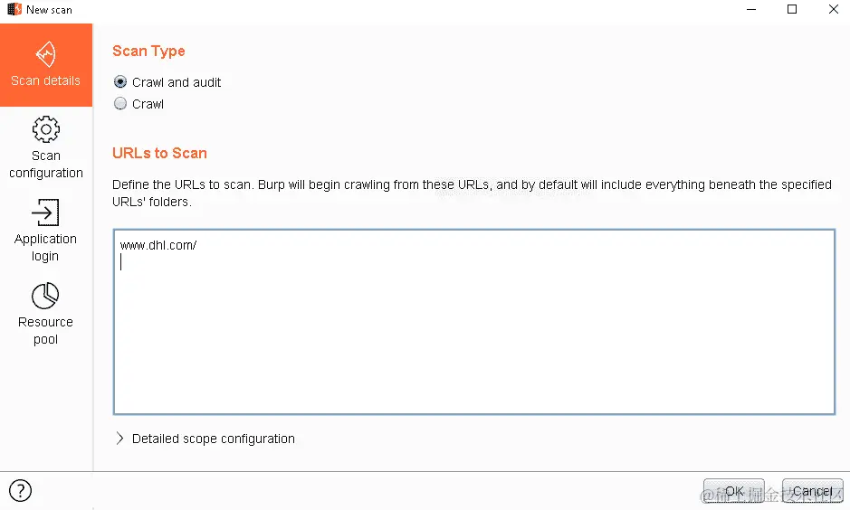 有一个我们之前没有探索的选项,用于在扫描期间控制范围。想象一下,您的范围不是整个 DHL 网站——只是www.dhl.com,但还有其他应用程序,比如mydhl.dhl.com和intranet.dhl.com,等等。