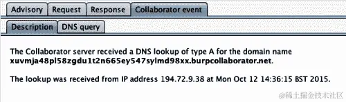 可以使用 Burp Suite Collaborator。在这些情况下使用它是一个很好的技巧,因为 Collaborator 是一个外部实体,作为接收器与数据库交互,如下截图所示: