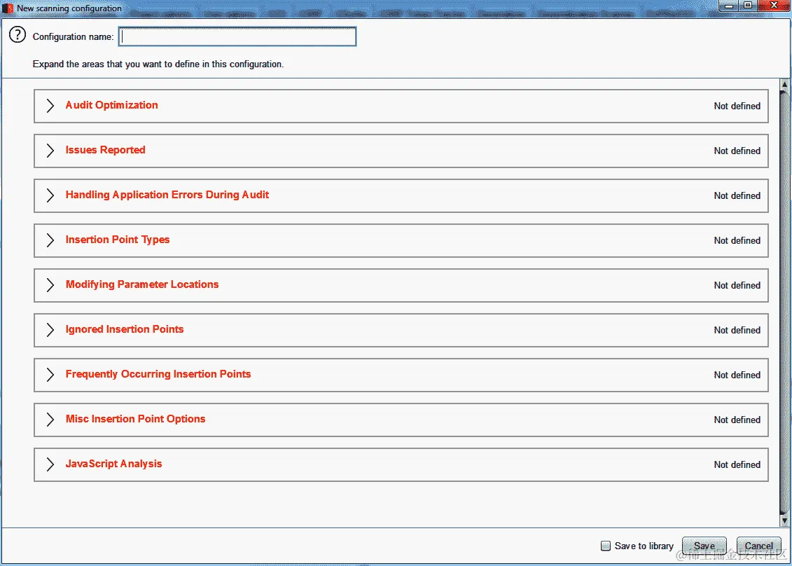 点击扫描配置。在这里,您可以配置有关扫描器如何执行应用程序发现以及如何执行安全测试的选项。