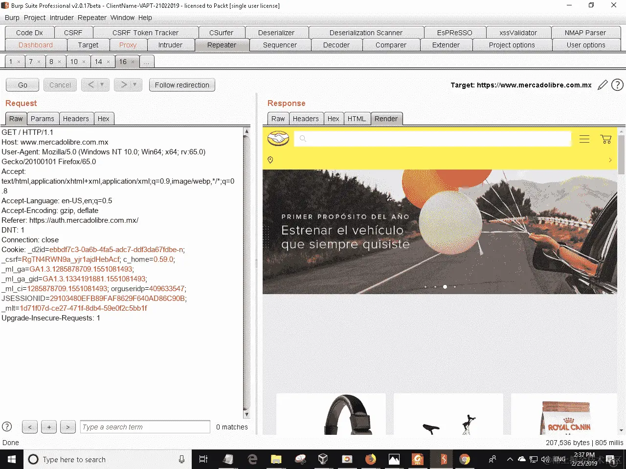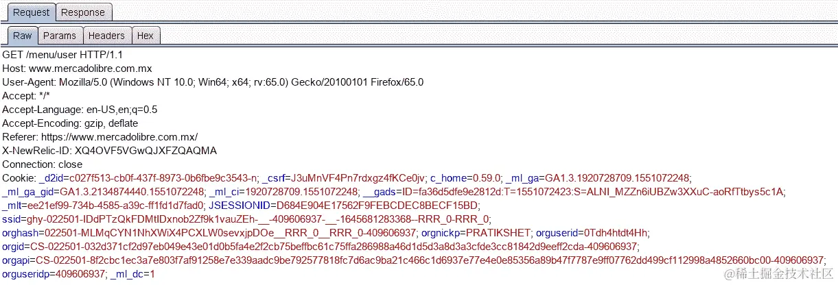 当您打开www.mercadolibre.com.mx/网页时,您会注意到应用程序显示了用户的第一条信息。因此,它不容易受到会话固定攻击。