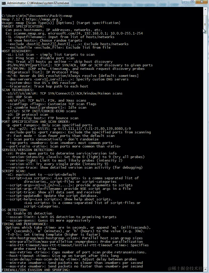 通常使用 Nmap(nmap.org/)来执行此任务,这是一个用于检测远程主机上运行的端口和服务的命令行工具。使用 Nmap 并不复杂;你只需在命令行上输入nmap,就可以看到我们有哪些不同的选项,如下面的屏幕截图所示: