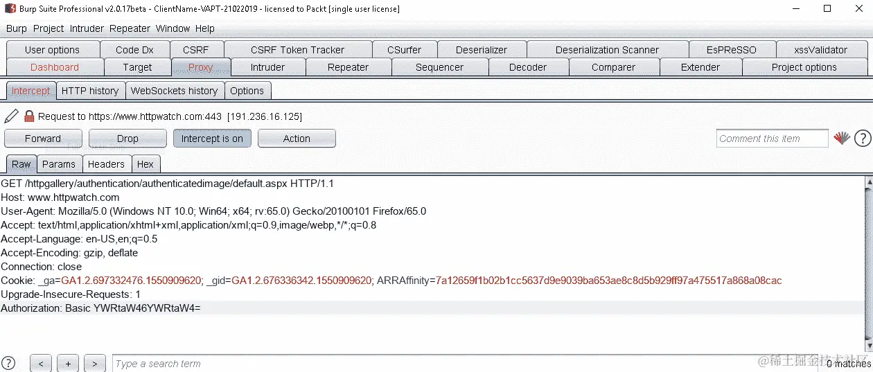应用程序以加密的方式存储会话 ID,因此不容易被提取。此外,会话 ID 与一个以上的令牌结合,cookie 也受到保护,如下面的屏幕截图所示: