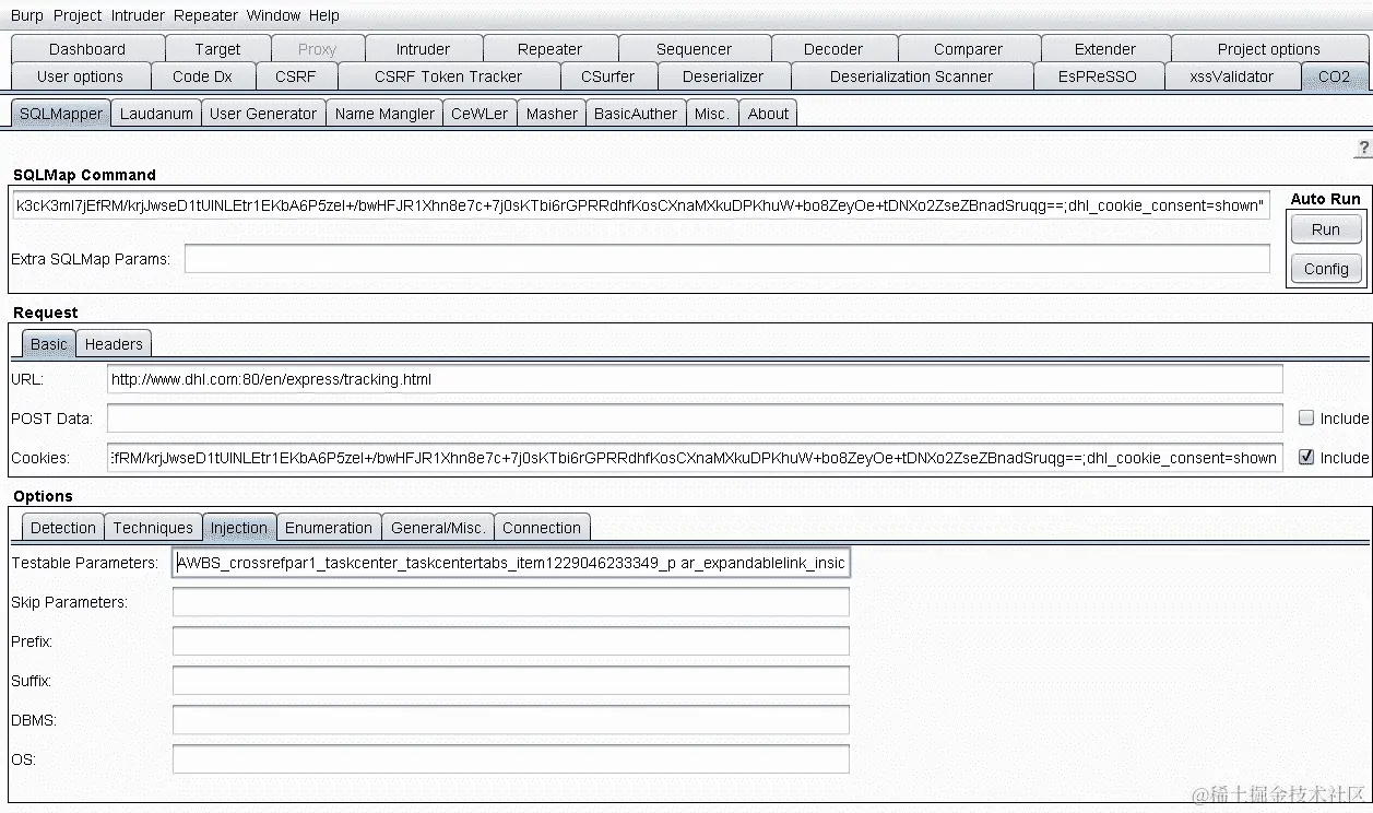 现在,我们将使用 SQLMap 来检测和利用 DHL 网站中的 SQL 注入。