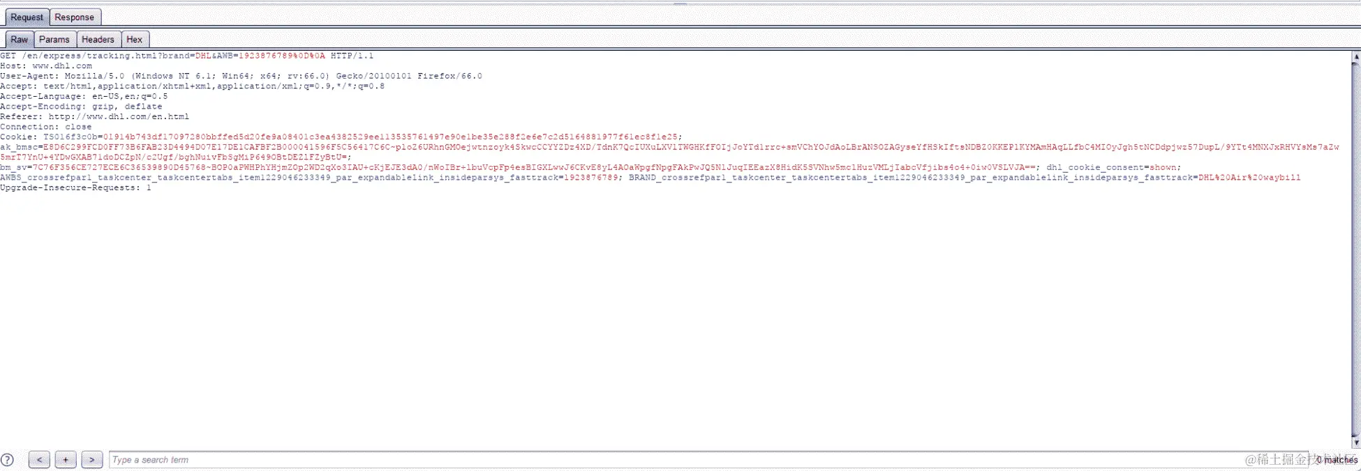 我们可以立即看到不同的输入要测试,例如搜索栏和跟踪框,但是看一下以下请求: