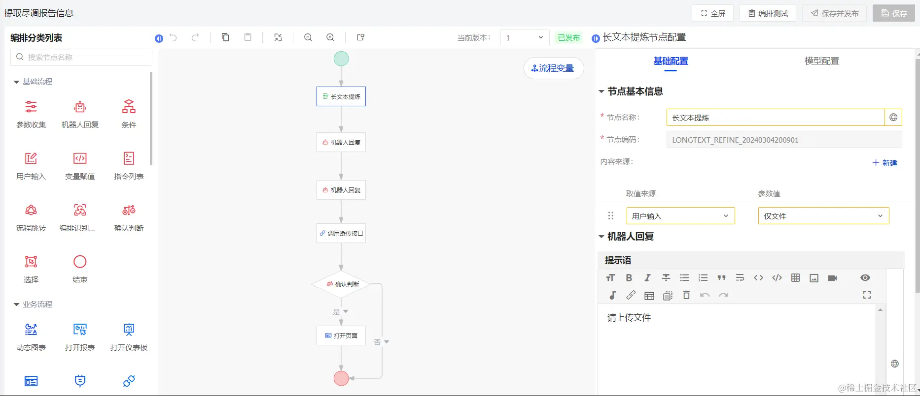 长文本提炼节点巧妙运用大模型技术,能够将文件内容进行提炼总结,同时为优化提炼效果,支持“递进优化”、“逐块提炼”、“分组提炼”三种提炼方式。