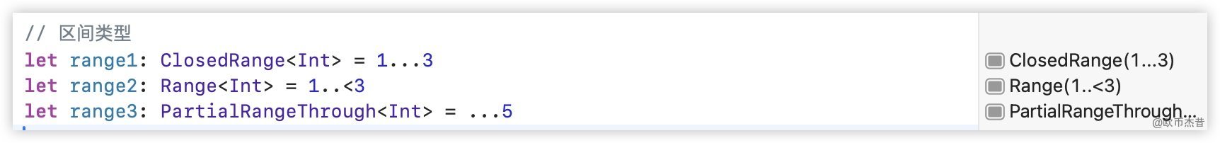 前面写的区间并没有写类型,编译器自动推断类型了。