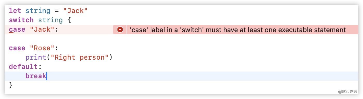 这样写汇报case至少需要一条语句,需要写个fallthrough