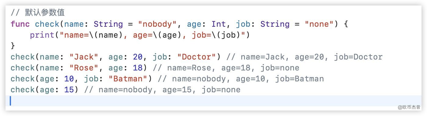 func check(name: String = "nobody", age: Int, job: String = "none") {