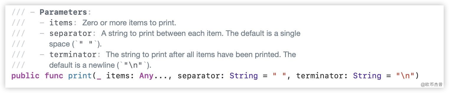 separator: String = " ",表示打印每个参数之间的字符串。默认是空格" "