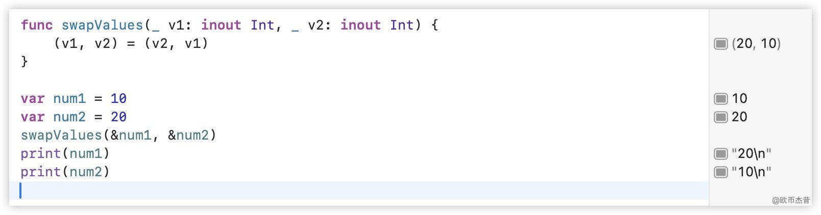 可以用inout定义一个输入输出参数:可以在函数内部修改外部实参的值