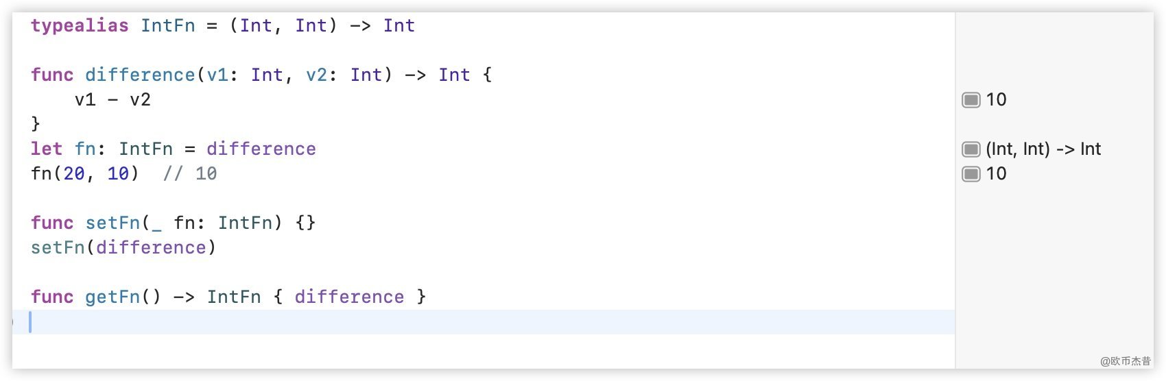 func sum(v1: Int, v2: Int) -> Int { v1 + v2 }