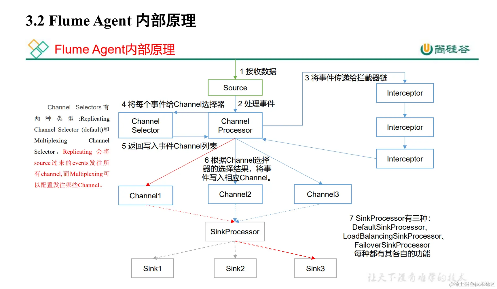 Flume 的 ChannelSelector 是用于决定一个事件 (Event) 应该被发送到哪一个或哪些 Channel 的组件。