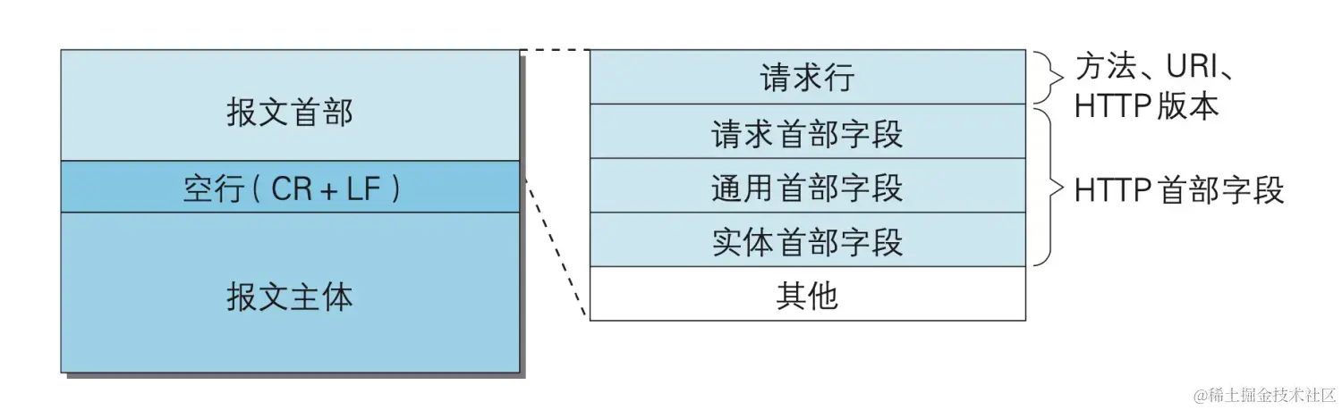 其他:可能包含 HTTP 的 RFC 里未定义的首部(Cookie 等)。