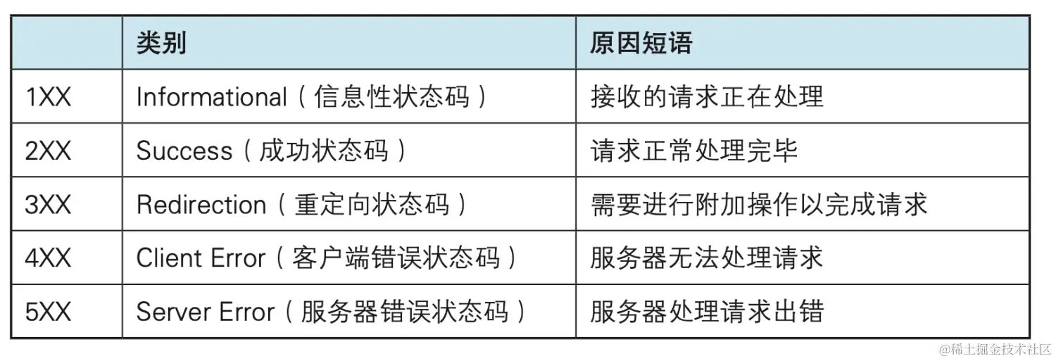 状态行:包含表明响应结果的状态码,原因短语和 HTTP 版本。
