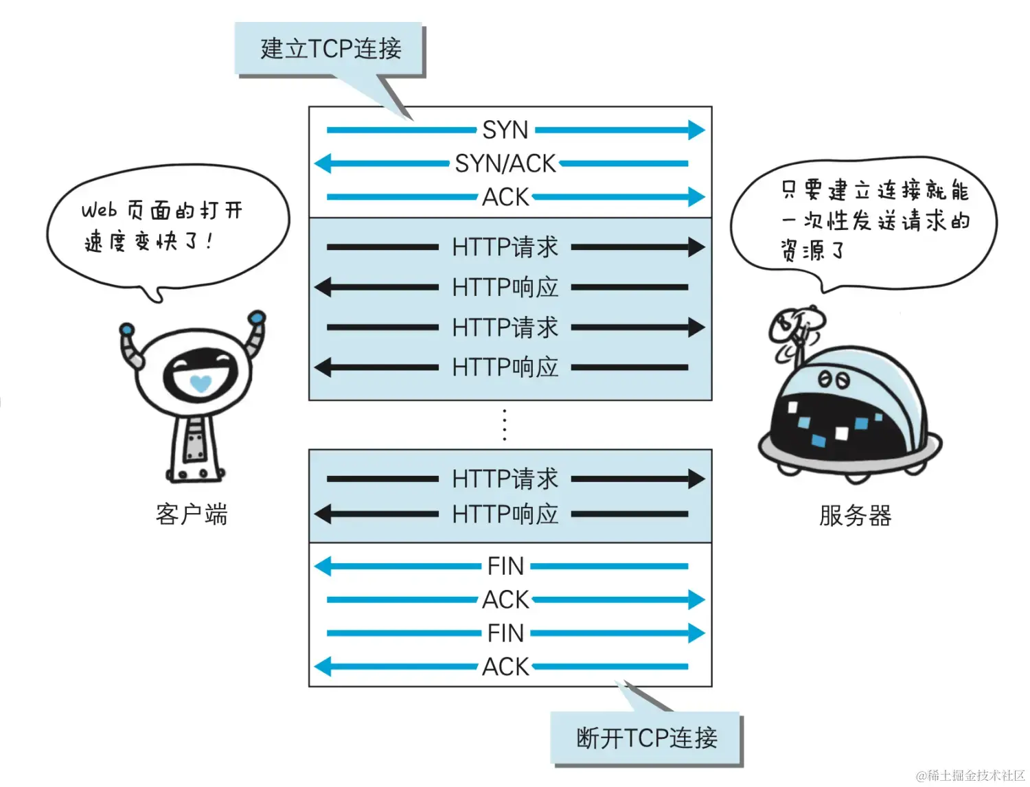 HTTP 协议的初始版本中,每进行一次 HTTP 通信就要断开一次 TCP 连接。