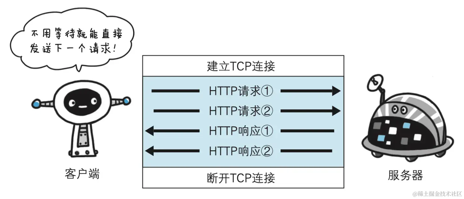 不用等待响应亦可直接发送下一个请求。这样就能够做到同时并行发送多个请求,而不需要一个接一个地等 待响应了。