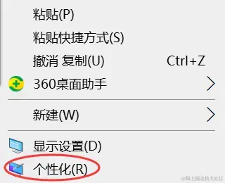 (1)右键点击桌面空白处,选择【个性化】 ;
