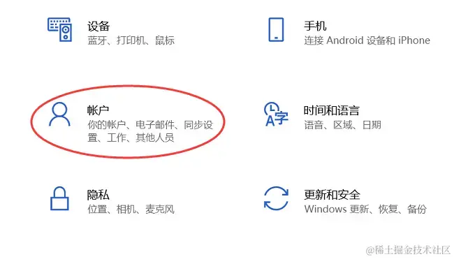 (1)打开【设置】,点击【账户】 ;