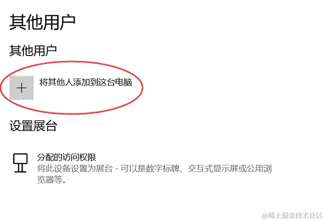 (2)在左侧选择【家庭和其他用户】,然后点击【将其他人添加到这台电脑】;