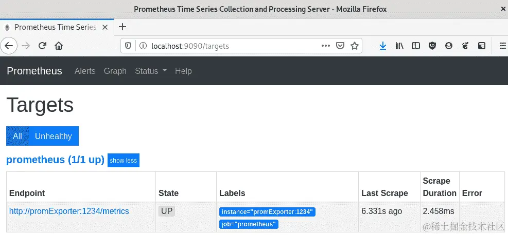 - 接下来,我们可以在我们的 Prometheus 实例中看到我们的