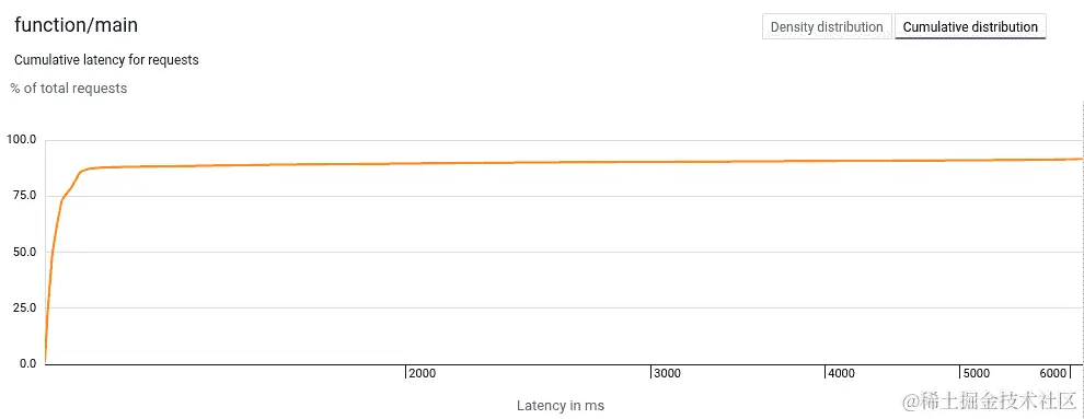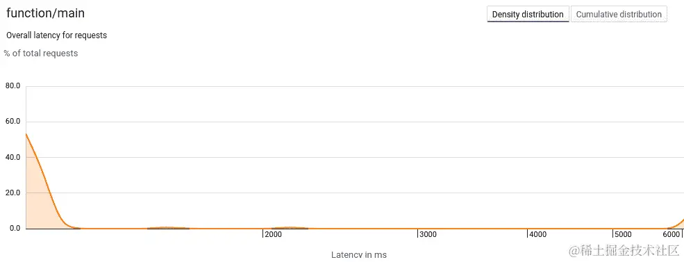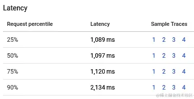 要测量延迟,我们可以查看latency_bucket Prometheus 查询。我们的请求被分成了一个包含不同延迟数字的直方图,这个查询反映了这一点。