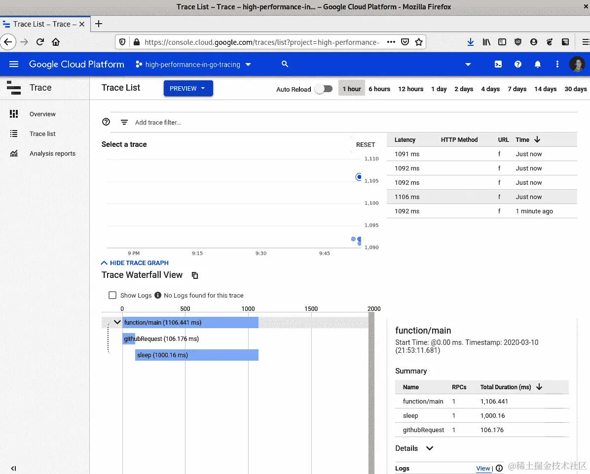 Google Cloud Trace 代码
