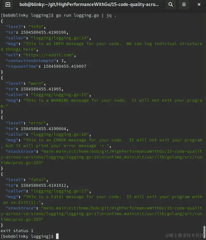 正如我们提到的,在您的 Go 应用程序中拥有结构化、分级的记录器将帮助您更快速、更有效地进行故障排除。