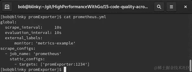 如果您想要使用除了 docker 主机之外的 IP 地址或主机名,您可以在 YAML 的scrape_configs->static_configs->targets部分中用 IP 地址或主机名替换promExporter。