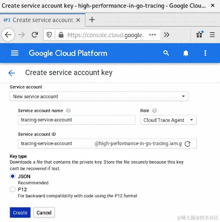 high-performance-in-go-tracing.json。您可以根据需要命名密钥。 -