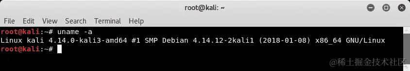 现在我们已经更改了默认凭据,并确认了网络连接,现在是时候检查我们的 Kali 安装的确切版本了。这包括确切的构建详细信息,包括内核和平台详细信息。uname -a 命令会给我们所需的详细信息,如下截图所示: