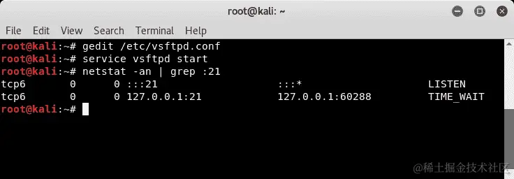 使用 Web 服务器可以快速托管和提供小文件,但 FTP 服务器提供了更好和可靠的解决方案来托管和提供大文件。我们可以在 Kali Linux 上使用apt-get install vsftpd命令来安装 FTP 服务器,如下面的屏幕截图所示: