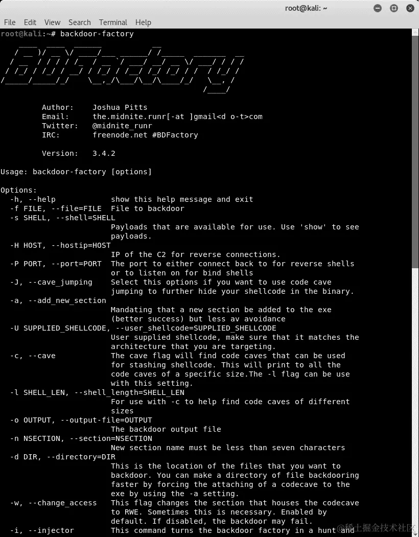 | 4 | 获取访问权限 | Metasploit, Backdoor-factory, John The Ripper, Hydra |
