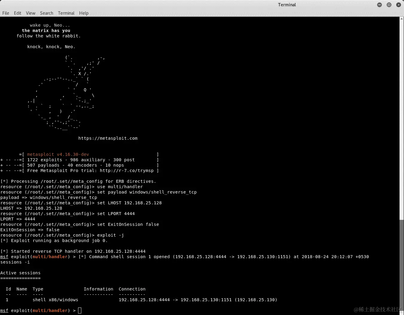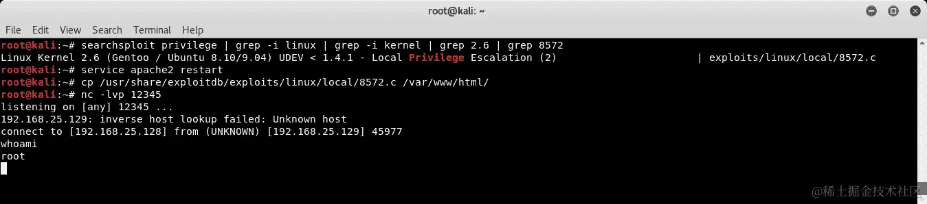 在渗透阶段,Web 服务器将对我们有所帮助,我们可能需要托管后门可执行文件。Apache Web 服务器默认安装在 Kali Linux 中。我们可以使用 service apache2 start 命令启动 Apache Web 服务器,如下截图所示。
