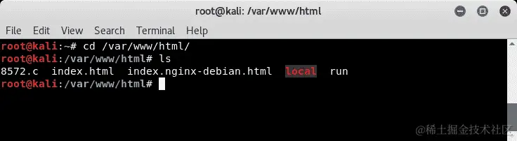 如果我们想要更改默认页面,或者希望托管任何文件,可以通过将所需文件放置在 /var/www/html 目录中来实现,如下截图所示: