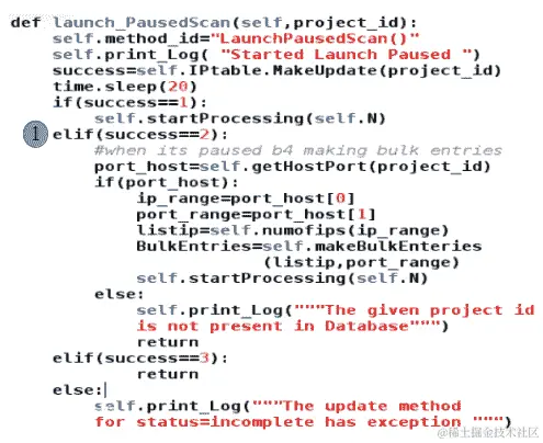 以下代码处理了如何恢复暂停的扫描。self.IPtable.MakeUpdate方法将未扫描主机的状态更新为incomplete。当有主机的状态从processing更改为incomplete时,返回 1。如果在将主机放入数据库表之前扫描被暂停,则返回状态2。在这种情况下,我们需要重新进行批量输入。其余代码很简单;我们调用startProcessing()方法来委派一个线程来扫描主机: