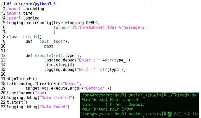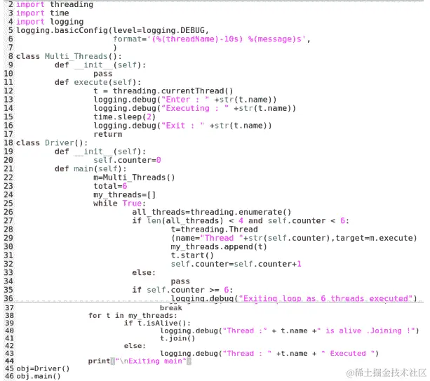 在下面的代码片段中,startProcessing()方法简单地从数据库表中提取所有不完整状态的不同主机,并将它们放入本机 Python 列表All_hosts中。对于当前示例,它将返回以下列表:[192.168.250.143, 192.168.250.144]。之后,高亮显示的代码片段**(1)**将调用startThreads方法,其中一个线程将被分配给一个主机: