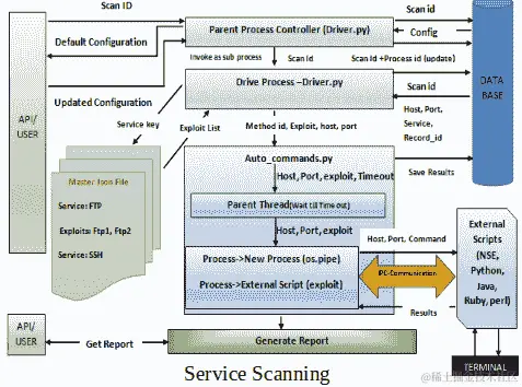 Driver_scanner.py:端口扫描结束后,下一步是执行服务扫描,这个 Python 类调用另一个类driver_meta.py,该类获取要执行服务扫描的项目名称或 ID。 -