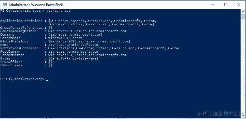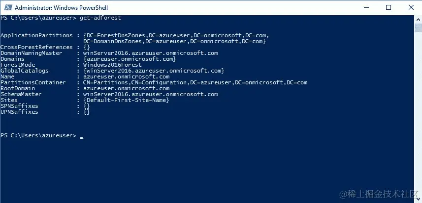 get-adforest:用于检查 Active Directory forests,如图所示: